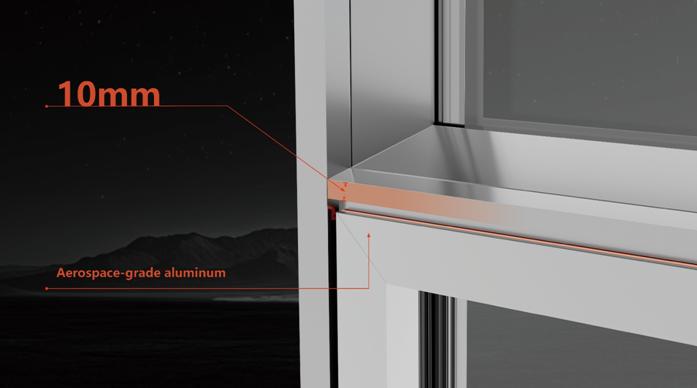 special alloy formulation and heat treatment process, this aluminum achieves a flexural strength 40% higherthan that of ordinary building materials. In the wind tunnel laboratory, the wind pressure resistance of the 1 cm frame reaches an astonishing class 9 (5000 Pa), which is enough to put most 5 cm frames to shame on thetraditional doors and windows.